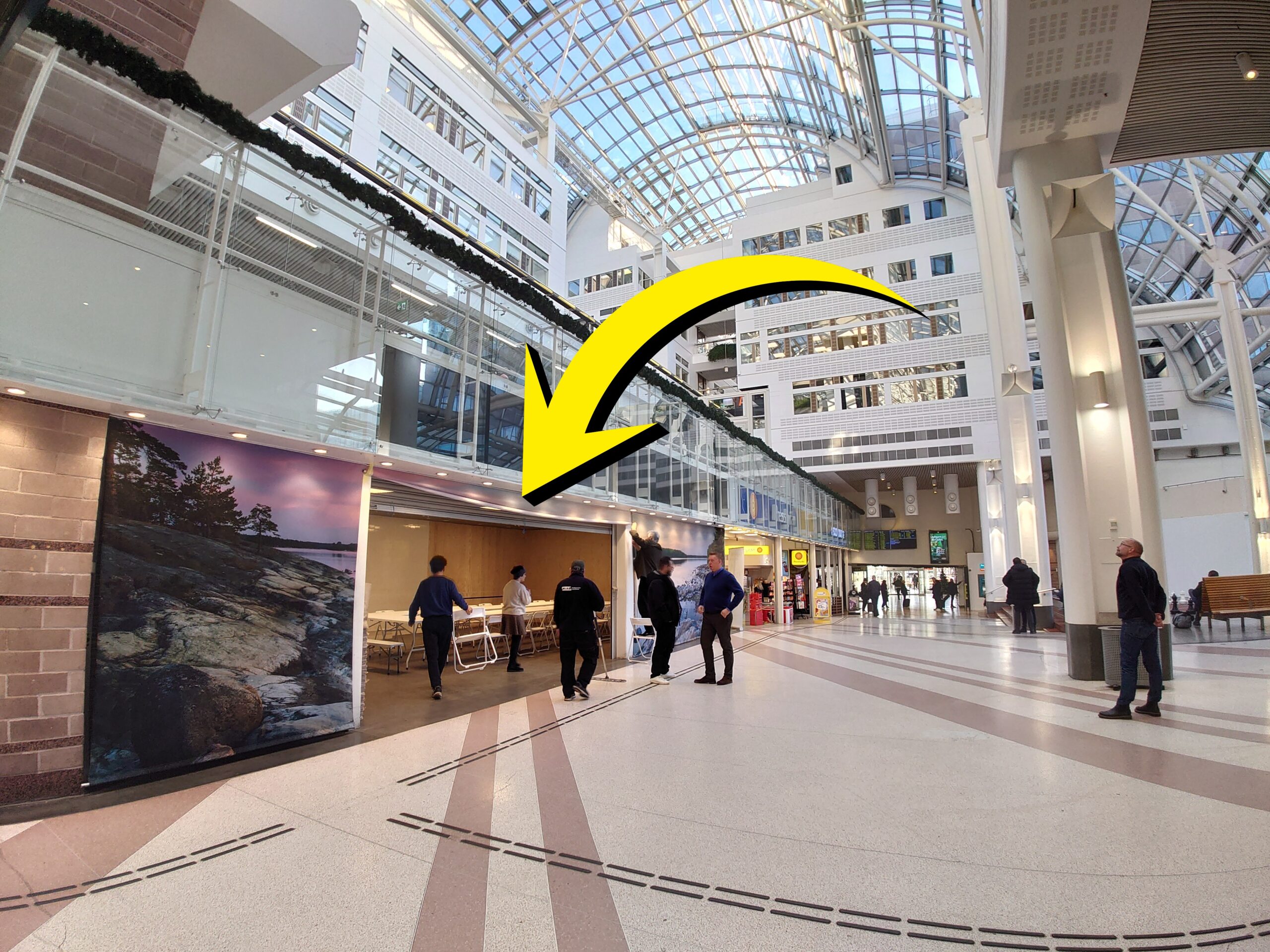 Lokalen ligger mitt i bussterminalen, bredvid Pressbyrån.