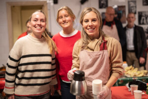 Eu-minister Jessica Rosencrantz (m) med volontärer